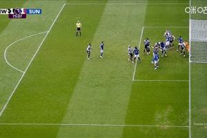 体育资讯03月22日讯 英超第31轮,纽卡vs 桑德兰。比赛第75分钟,纽卡角球佳夫头球破门,但因门前有干扰门将被主裁判吹掉。