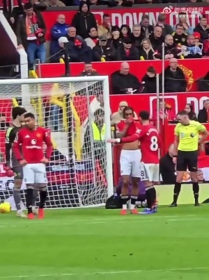 队长!卢克·肖接受治疗、曼联0-1落后时,B费利用比赛中断的时间,指导了球队的大部分队员👏